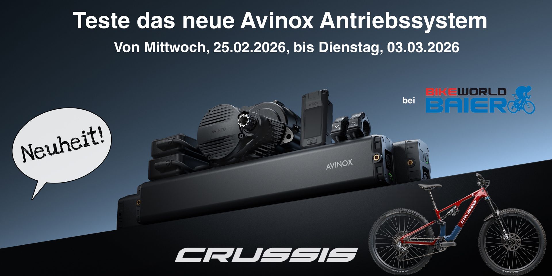 Teste das Modell E-FULL 12.11 unseres neuen Partners Crussis mit dem Avinox Antriebsystem